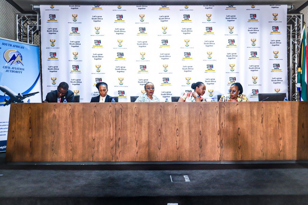 The media briefing covered the business status of the Airports Company South Africa (ACSA), the South African Civil Aviation Authority (SACAA) and the Air Traffic and Navigation Services (ATNS). SACAA’s primary mandate is to regulate, control, promote, support by developing, enforcing and continuously improving levels of safety and security throughout the civil aviation industry in South Africa. The Air Traffic Navigation Services is charged with the acquisition, establishment, development, provision, maintenance, management, control or operation of air navigation infrastructure, air traffic services or air navigation services. The Third Aviation State Owned Entity is the Airports Company South Africa, (ACSA). ACSA is mandated to undertake the acquisition, establishment, development, provision, maintenance, management control or operation of any airport, any part of any airport or any facility or service at any airport normally related to the functioning of the airport in South Africa.